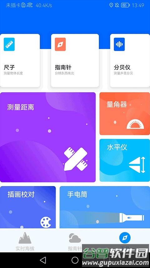 2. 户外工具箱:包含尺子、噪音检测仪、距离测量、水平仪等丰富功能;