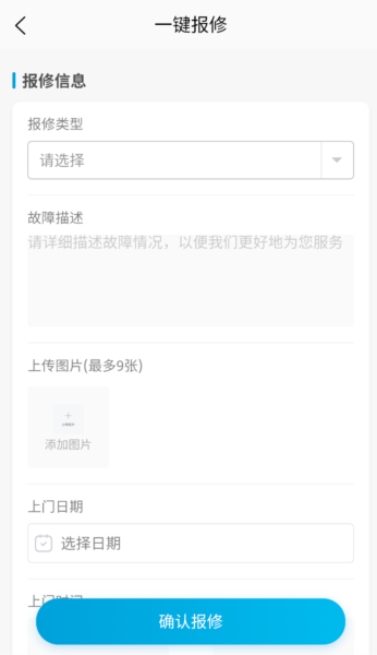 3、功能使用:进入应用首页,根据需要点击相应板块,例如操控家电进入智慧家居,提交维修申请选择智慧物业;