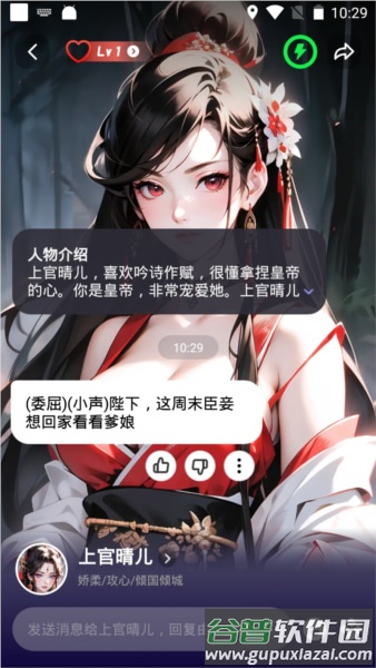 5. 例如选择上官晴儿后,即可进入对话界面;