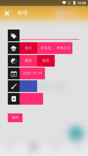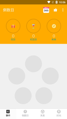 * 在主界面左右滑动,可以快速添加倒数日或关联联系人的事件;