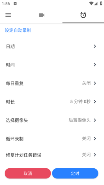 3、前后摄像头均可使用,存储空间不足时自动停止;