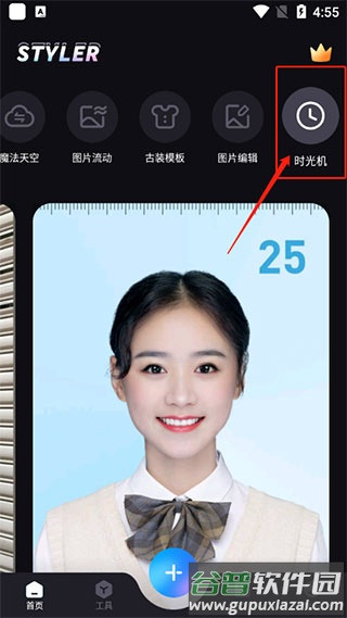 1、首先在本站下载软件,然后进入软件,在首页的上方找到时光机这个功能