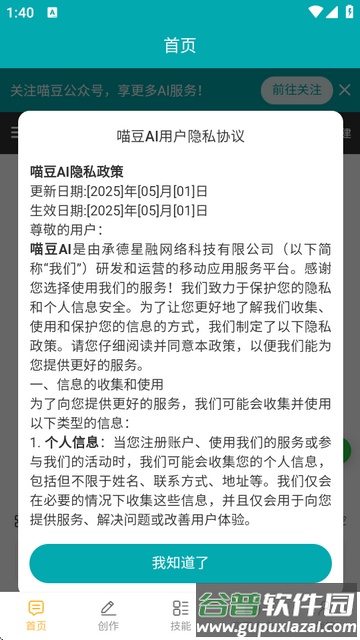 2. 仔细查看隐私协议内容,随后点击“我知道了”进行确认。