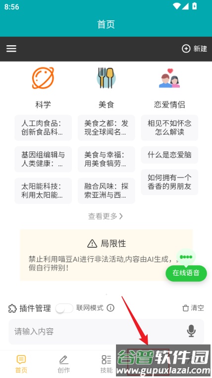 5. 点击“创作”板块,可以选择具体功能进行操作,或直接搜索找到所需工具。