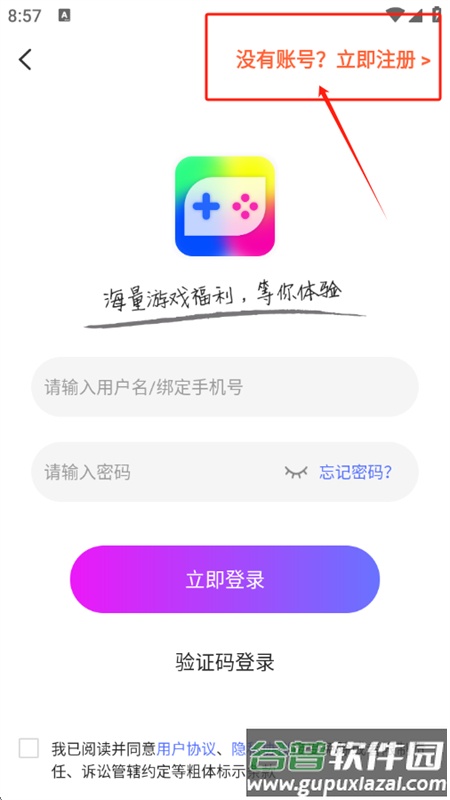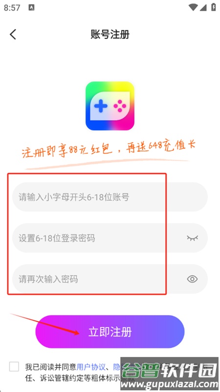 3、输入账号和登录密码,点击立即注册即可完成。