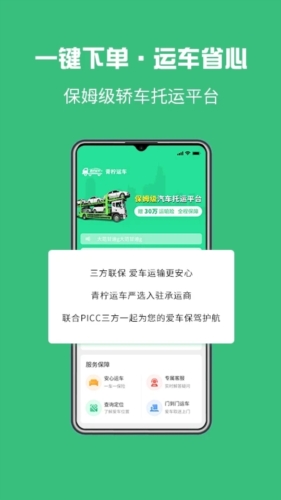 青柠运车app为您的车辆提供专属保险保障,配备专属客服随时解答疑问;您可以快速查询爱车实时位置,享受门到门运输服务,一键即可安排取送上门。这款软件是便捷高效的智能汽车托运平台,既优化了消费者的服务体验,也为承运商创造了更多商业机会。如果您需要托运汽车,不妨下载青柠运车,让它为您妥善处理一切运输事务。