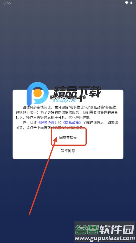 1、打开软件后,首先需要同意相关用户政策;