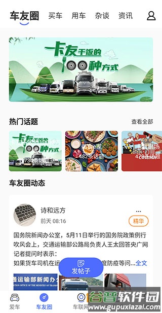 4、车友圈内可与其他用户交流买车、用车、养车话题,分享实用知识。