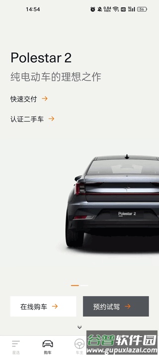 2、进入购车板块,可预约实地试驾或直接在线选购车辆。