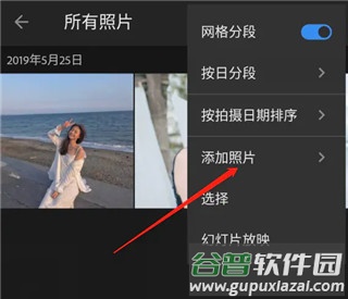 5、在弹出的菜单中选择添加照片。