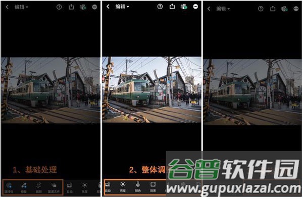 提升编辑效率:自动启用配置文件与光学工具,上滑手势可打开信息与评级面板。