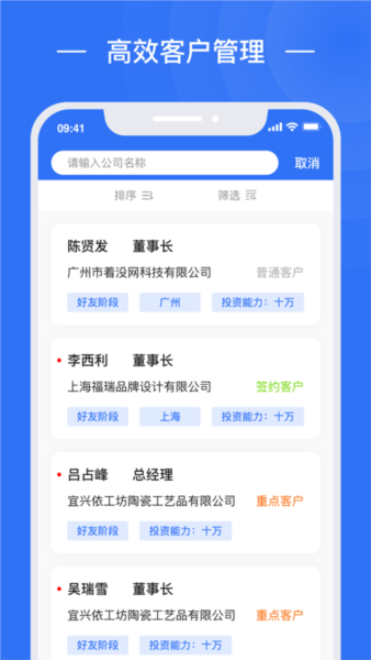2、以简洁的方式呈现不同信息,帮助用户感受客户管理带来的高效体验;