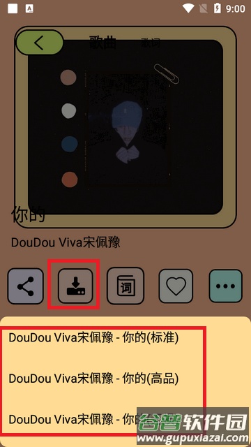 2、在歌曲播放界面,点击下载按钮,就可以自由选择想要下载的音质格式。