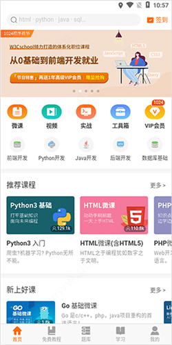1、从本站获取并安装编程狮应用,打开后进入主界面;