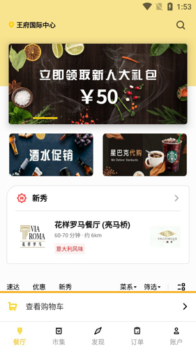 用户可在应用内自由选择餐厅与美食,享受专业高效的送货上门服务。