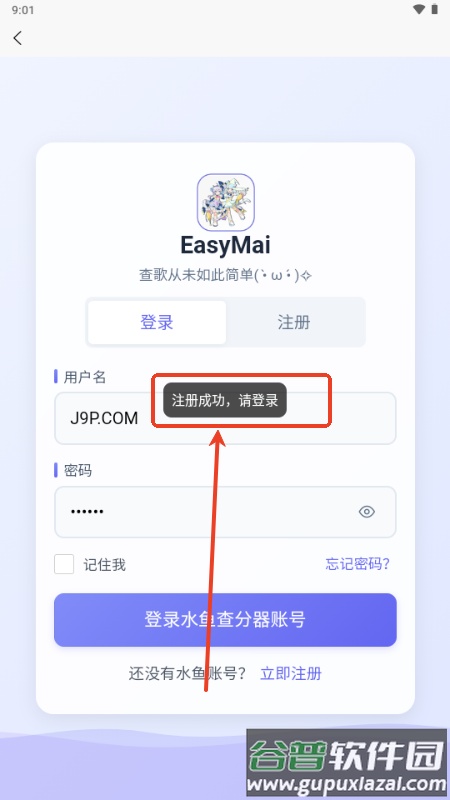5、返回登录页,使用刚注册的账号密码登录即可。