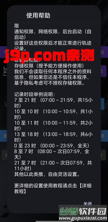 3、暂停或结束记录;不需要记录足迹时,只要将其设置在时段之外即可。