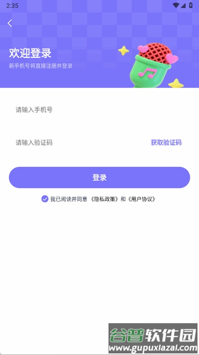 2、输入手机号和收到的验证码完成登录。