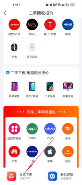 4、检测完成后返回首页,点击“回收报价”进入估价页面;