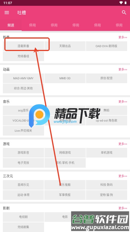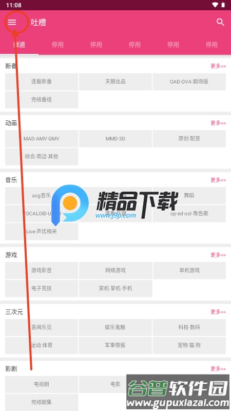 1、打开软件,在主页面选择感兴趣的栏目进入;