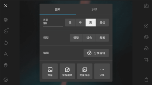 导出时可设置图片质量与水印。