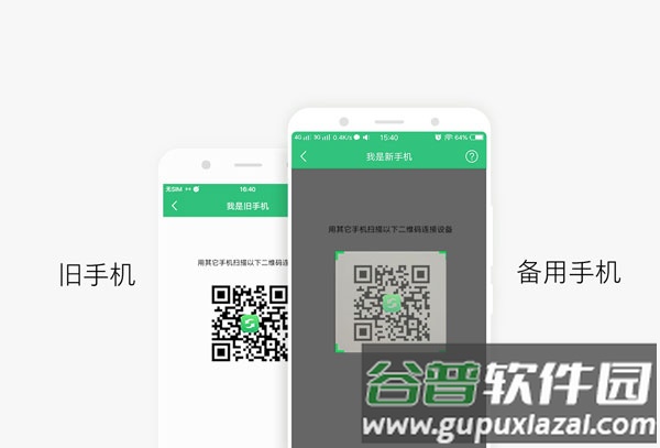 3、使用新手机扫描旧手机展示的二维码,建立连接。