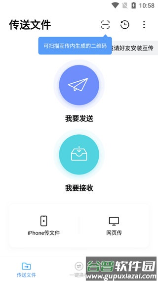 1、打开互传,选择“传输文件”,点击“我要发送”,等待对方加入;