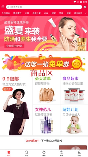 第一个是【首页】板块,这里汇总了所有商品的导览页面,用户可以通过官方分类快速查找目标商品及对应优惠券。