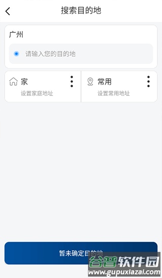 2、进入首页开启定位,系统识别位置后点击下方目的地框;
