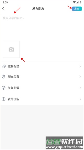 3、选择要上传的照片,填写动态文字内容,最后点击发布即可。