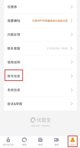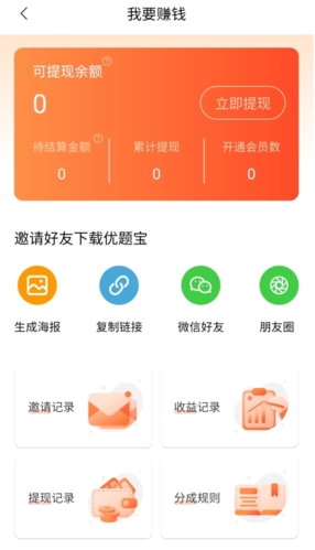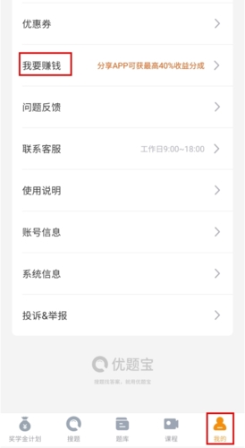 用户若觉得产品实用,可将优题宝分享给朋友;成功邀请后,最高能获得40%的佣金返现。