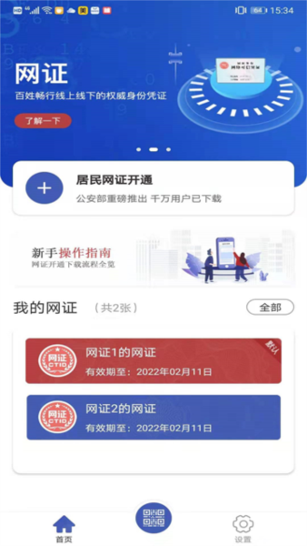 1、点击APP首页核心功能区域的“居民网证开通”;