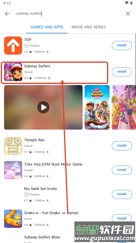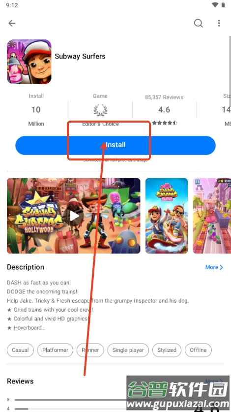 4、输入完成以后就会跳转到Subway Surfers的详情页面;
