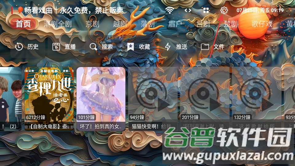 1、打开畅看戏曲app,点击首页的设置按钮。