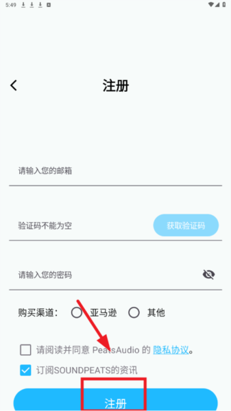 填写邮箱地址、验证码与密码,勾选协议后点击注册按钮;