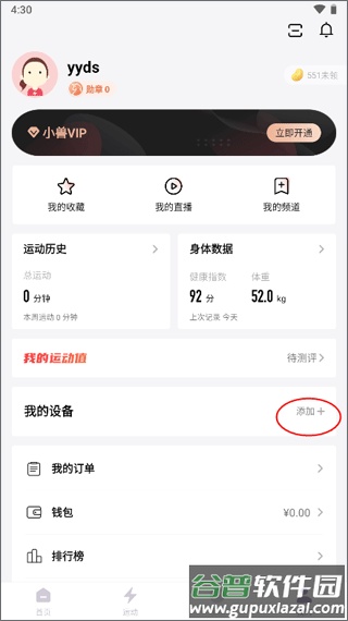 2、在个人中心找到“我的设备”模块,点击右侧的添加按钮。