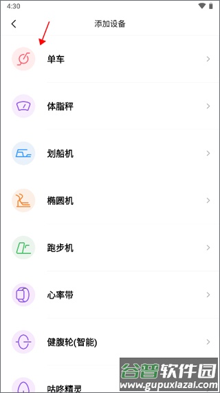 3、进入后看到可添加的设备列表,选择单车类别。