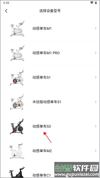 4、根据自己购买的单车型号进行选择,例如动感单车S3。