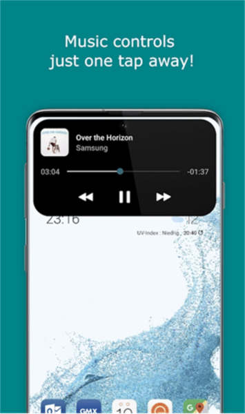 1、灵动岛功能还原:该应用在安卓设备上还原了类似的动态信息显示与交互体验,例如音乐播放控制与即时通知查看。
