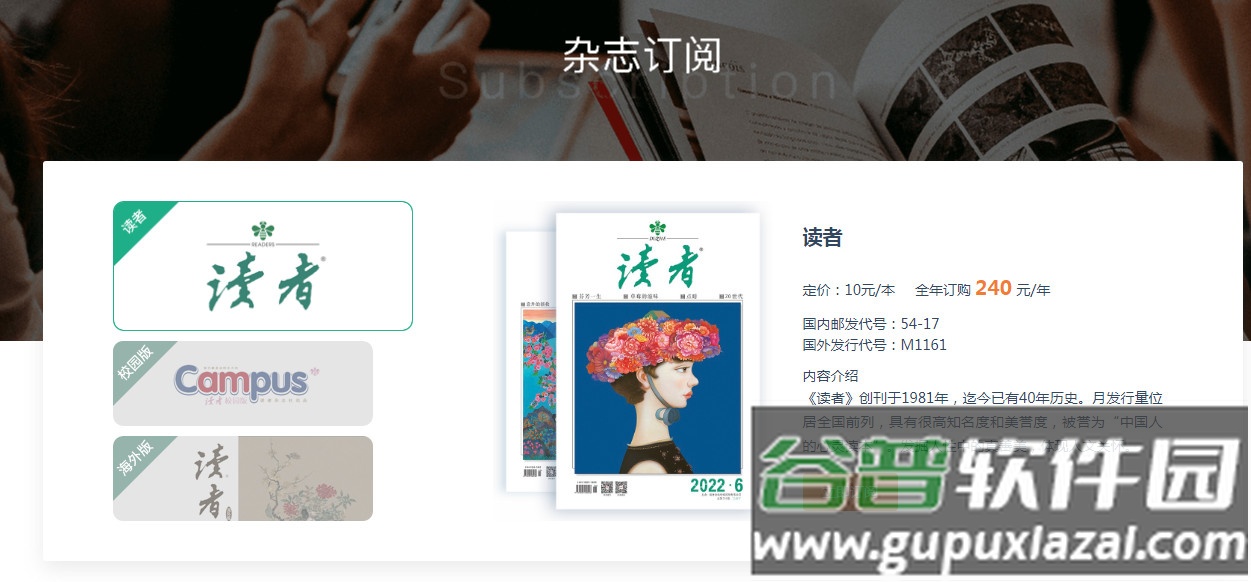 《读者》创刊于1981年,至今已有40余年历史;其月发行量位居全国前列,享有很高的知名度与美誉度,被誉为“中国人的心灵读本”。杂志致力于发掘人性中的真善美,体现人文关怀。