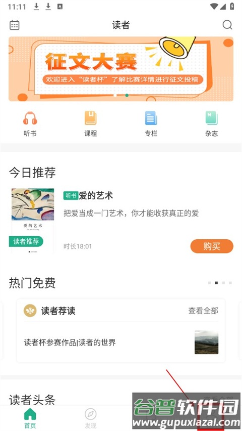 1、进入读者app,点击下方“我的”页面。
