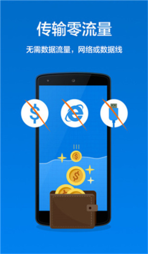 1、零流量消耗:文件传输过程不使用流量与Wi-Fi,与好友互传没有任何成本。