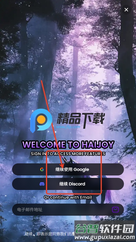 2、在登录界面选择登录方式,例如通过谷歌账号或电子邮箱;