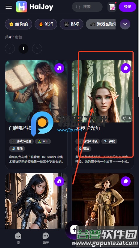 1、在主页浏览并选择自己感兴趣的智能体角色;