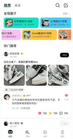 4、在动态广场浏览其他用户分享的潮鞋内容,参与话题讨论;