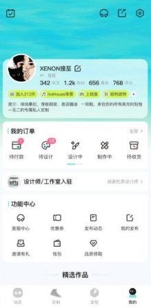 3、设计师推荐:平台依据算法动态展示优秀设计师及其作品动态;