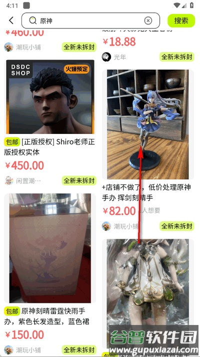 1、打开软件进入首页,通过上方搜索栏查找感兴趣的手办;