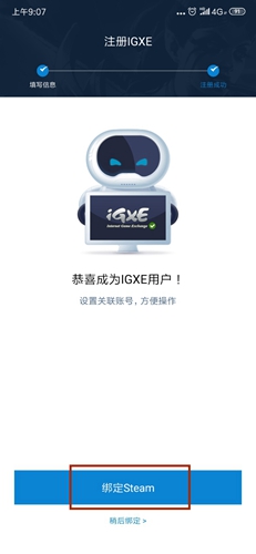 首先在IGXE完成账号注册,成功注册后系统通常会提示进行Steam绑定。