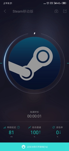 点击加速后,加速器通常会自动启动Steam应用,此时再进行平台操作,连接稳定性会得到提升。