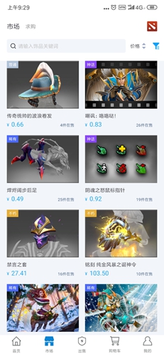 进入应用主界面,会看到许多推荐的游戏饰品,点击任意感兴趣的商品进入详情页。